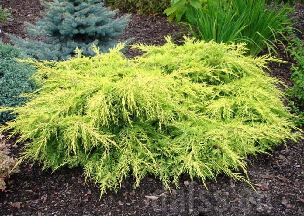 ‘Gold Star’ Juniperus × pfitzeriana 0,8–1,2 m 1,5–2 m világos arany tömött, félgömbös, nagyon mutatós