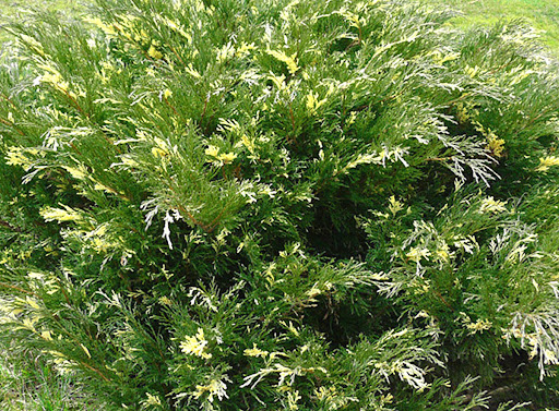 ‘Andorra Variegata’ Juniperus horizontalis 0,3–0,5 m 1–1,5 m sárgás-fehér tarka különleges, finoman színezett lombú, laposan terülő fajta