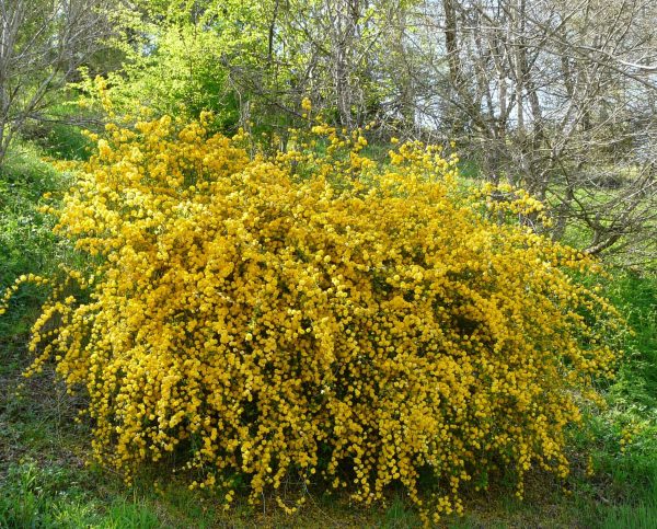 A legismertebb fajta. Teljesen telt, rózsaformájú sárga virágokkal, bőséges virágzás tavasszal. Klasszikus sövény- vagy szoliternövény.