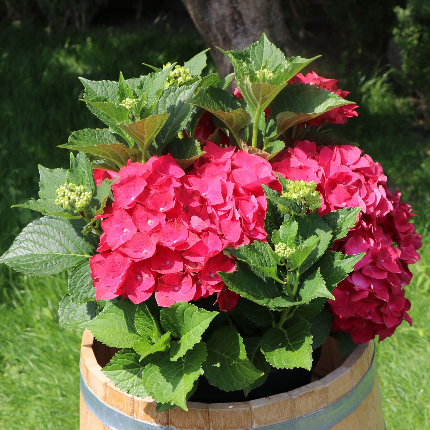 •Intenzív, majdnem piros árnyalatú virágzat – a hortenziafajták között ritkaság