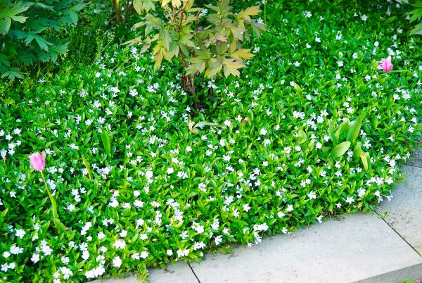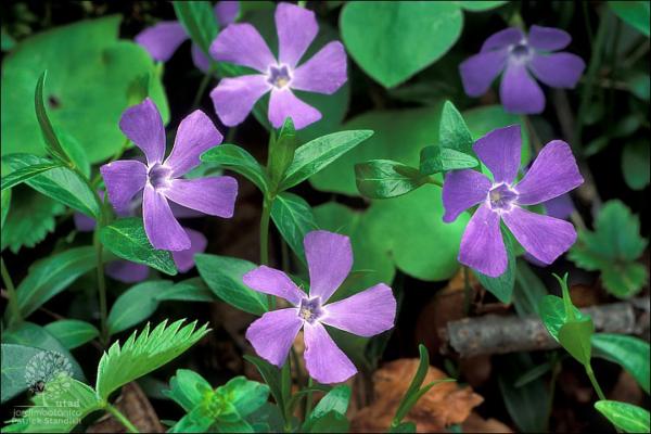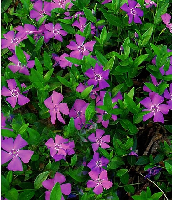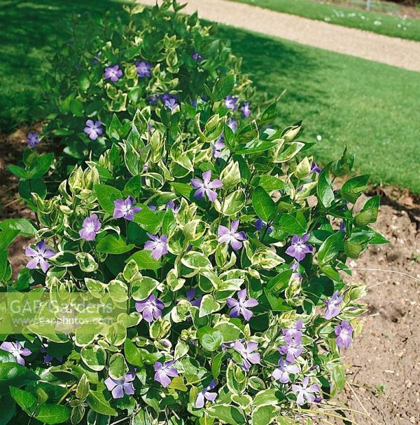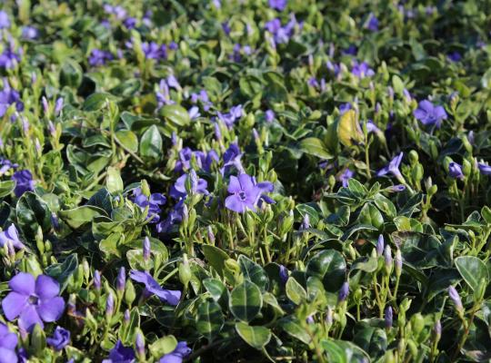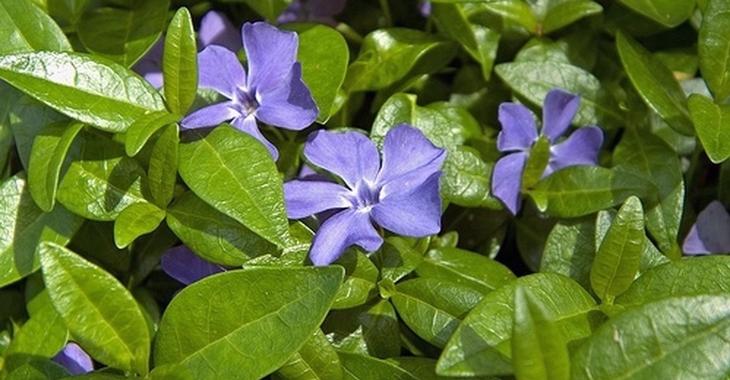 A Vinca minor és díszes fajtái árnyékos kertrészek nélkülözhetetlen lakói.
