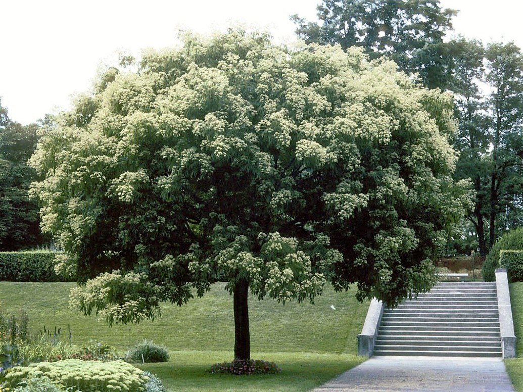 Július–augusztusban virágzik, amikor más fák már befejezték a virágzást. A krémszínű, apró virágok ernyőszerű fürtökben nyílnak, illatosak és nektárban gazdagok, így a fát tömegesen látogatják a méhek, pillangók és más beporzók.