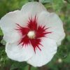 A ‘Red Heart’ virágai klasszikusan szépek: hófehér szirmok, a középen pedig erős, élénkpiros mintázat, ami gyakran valóban szív alakú. A virág egyszerű, de annyira ikonikus, hogy gyakran ezt tekintik a „tökéletes hibiszkusznak”.