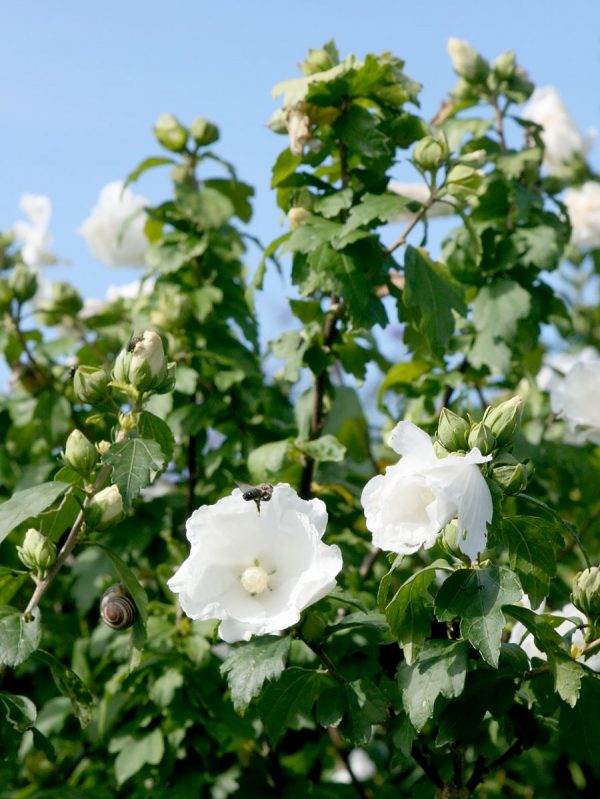 A ‘White Chiffon’ a telt virágú hibiszkuszok hófehér hercegnője. Tökéletes választás világos színű kerítések vagy épületek mellé, ahol ragyogása igazán érvényesül. Telt szirmai légiesek, mint egy menyasszonyi ruha.