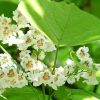 Virágzás: június–július, fehér virágok bíbor pettyekkel, nagy bugákban