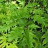 •Levél: 10–20 cm hosszú, mélyen karéjos, fényes zöld, ősszel élénkvörösre vagy bordóra színeződik